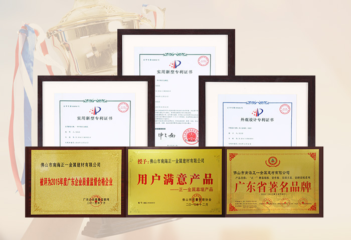 通過ISO9001認(rèn)證,國家建筑材料測試中心和中國有色金屬華南產(chǎn)品質(zhì)量監(jiān)督檢驗(yàn)中心合格檢測,符合美國建筑制造商協(xié)會(huì)AAMA2605-98涂層標(biāo)準(zhǔn),被國家建設(shè)部認(rèn)定為建筑鋁合金外墻板、鋁合金天花板定點(diǎn)生產(chǎn)企業(yè)。